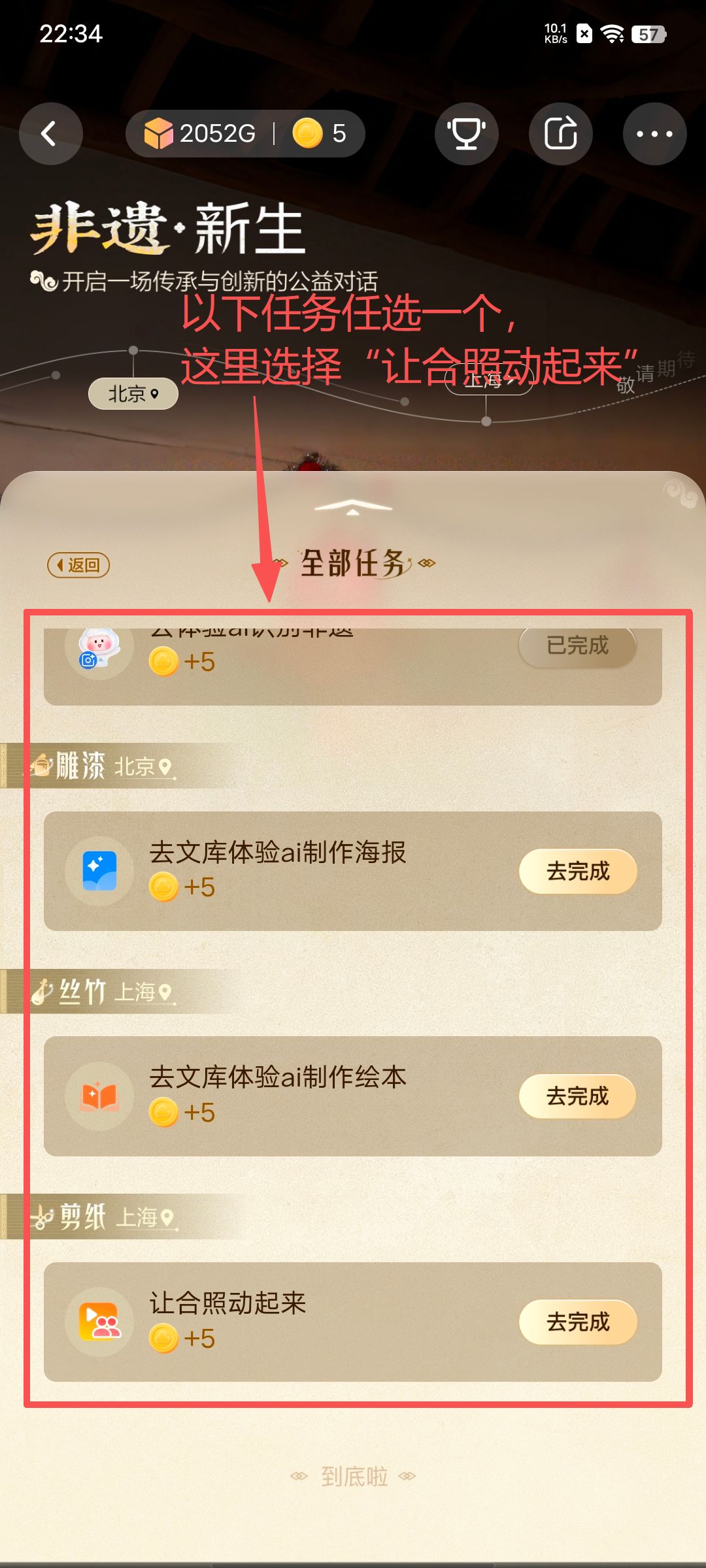 4.任选一个无门槛任务(比如「让合照动起来」等),按提示完成,全程不用下载额外软件、不用付费,本文选择的是“让合照动起来”