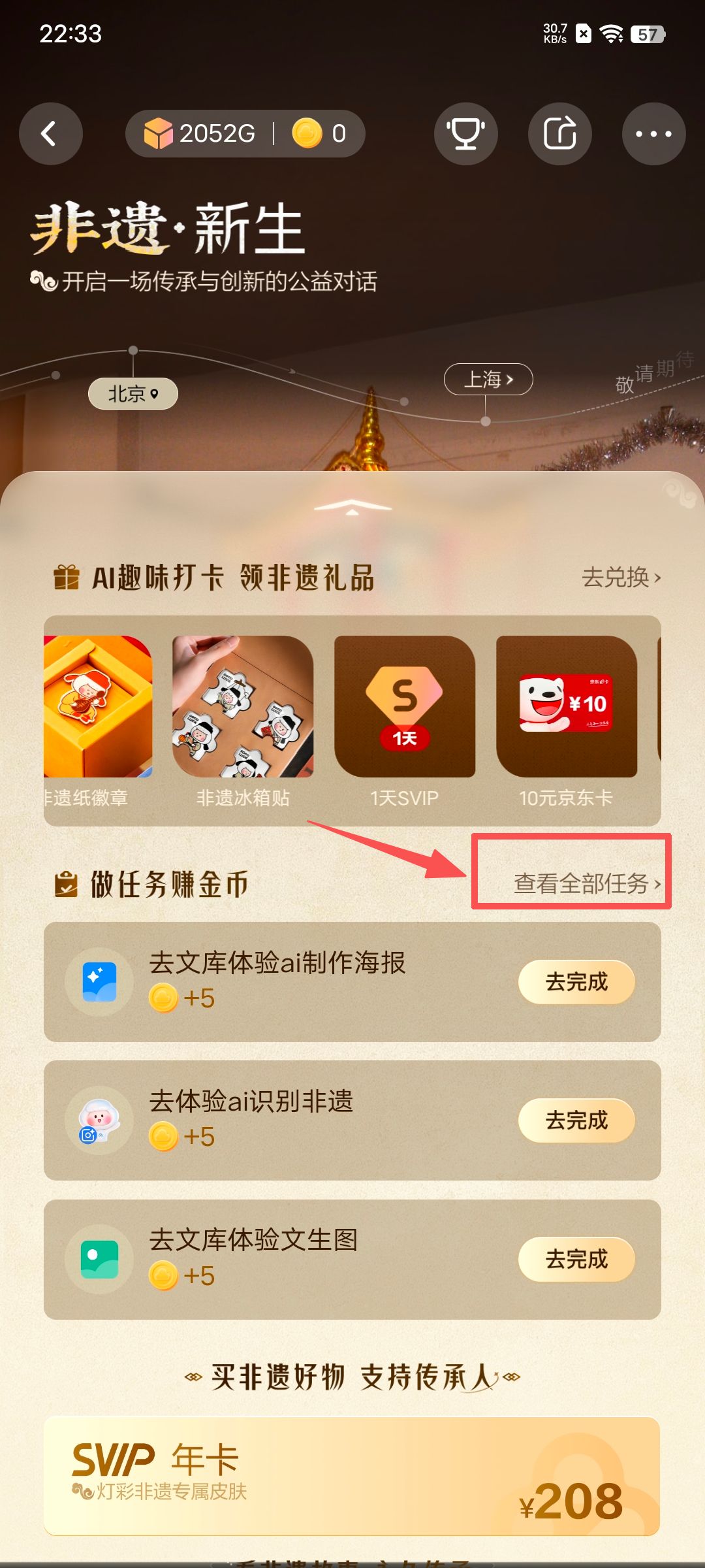 3.进入金币活动页面后,找到 「查看全部任务」 按钮并点击,就能看到所有可完成的简单任务